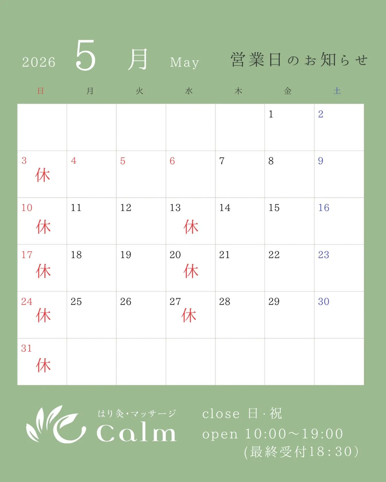 はり灸・マッサージ Calm(カーム)